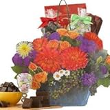 Beautiful Flower Bouquet Gift Tote Bag of Decadent Chocolate Treats - Gourmet Food Gift Basket