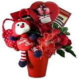 Let our plush and adorable Love Bug deliver your message in this charmingly sweet candy bouquet! He's tucked inside a keepsake gift basket filled with a mini bouquet of 5 cherry heart lollipops, a heart shaped box of assorted chocolates, cinnamon cookies, and decadent chocolate truffle cookies for your sweet heart to enjoy. Send this delightful gift for Valentine's Day, an anniversary, or just to say "I love you!" Each gift is carefully hand crafted with attention to detail and includes a personalized gift message from you to convey your heartfelt best wishes. Manufactured by Art of Appreciation Gift Baskets.