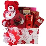 This adorable plush teddy bear comes bearing his heart , hugs and kisses. He's totally irresistible, especially when paired with sweet chocolate indulgences and yummy treats to celebrate your love! Enjoy Each gift is hand crafted with attention to detail, tied with ribbons and includes a personalized gift card message to convey your sweet wishes. Manufactured by Art of Appreciation Gift Baskets.